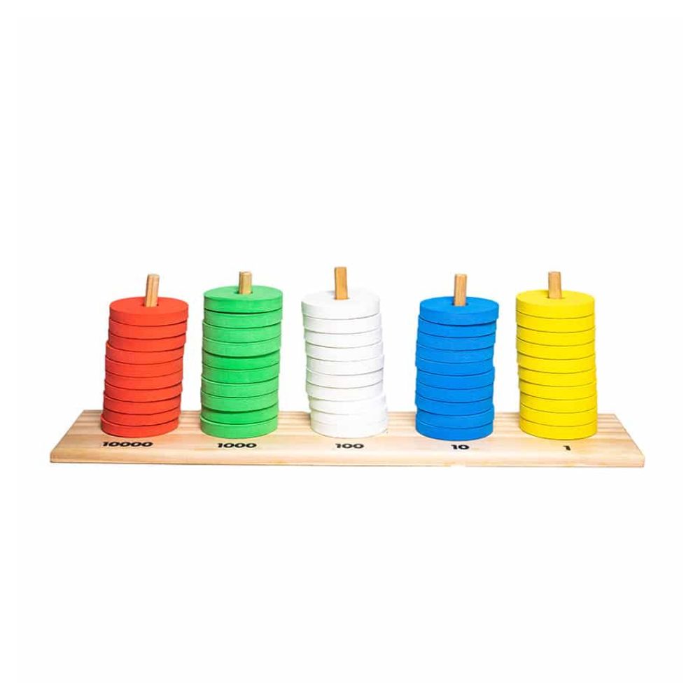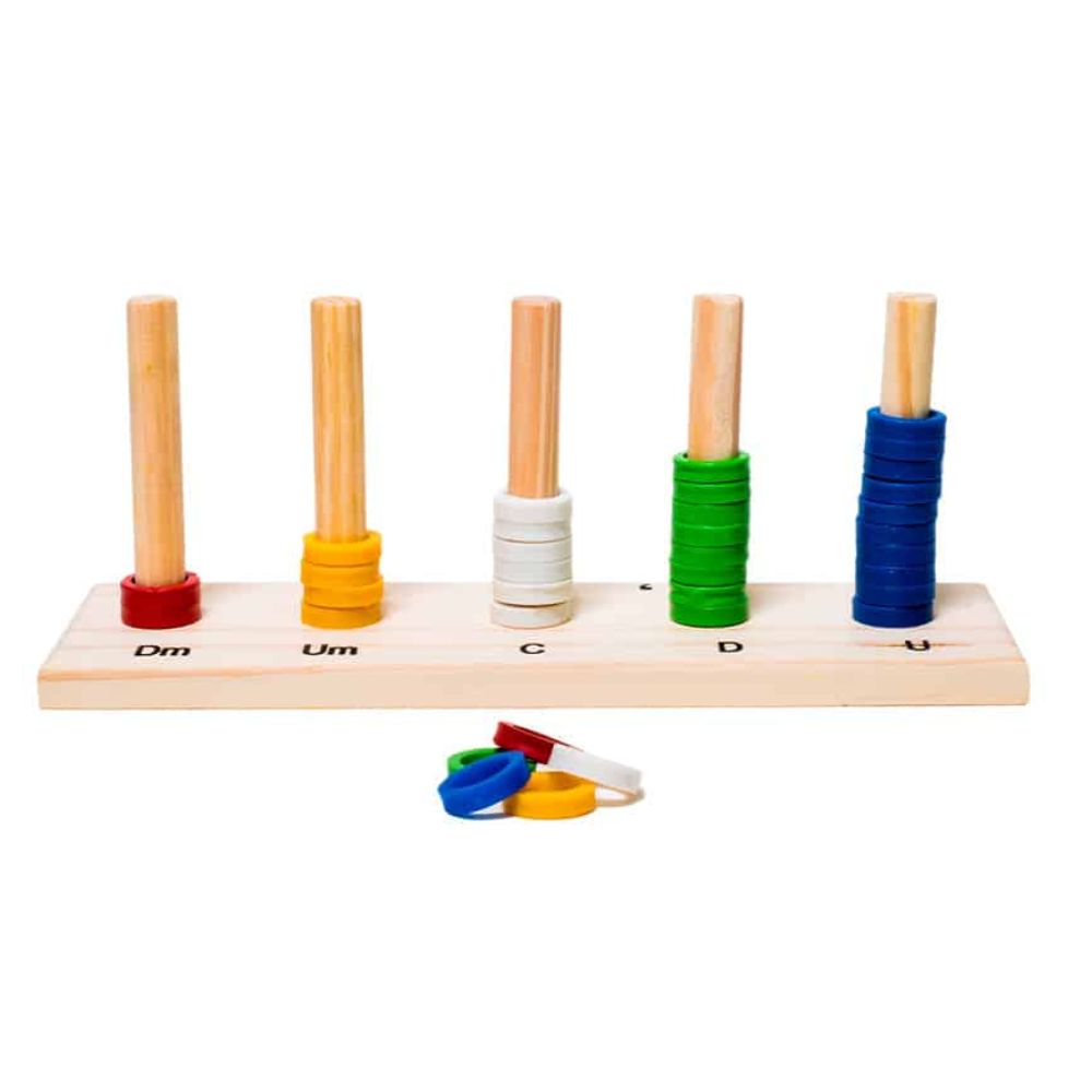 O ábaco vertical de pinos e ábaco decimal (conhecido também como ábaco aberto) é excelente para trabalhar o valor posicional dos algarismos no numeral. Ele é um material pedagógico indicado para compreender o sistema de numeração decimal e posicional e explorar as quatro operações de adição, subtração, multiplicação e divisão.